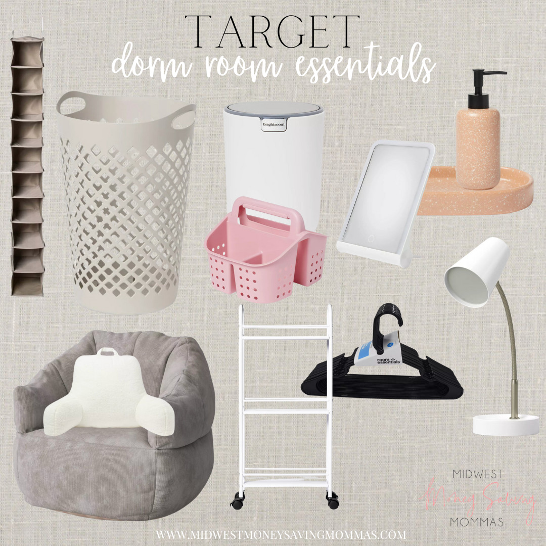 Target always has a fantastic selection for college dorm prep! That section of the store can get quite chaotic, so we’ve rounded up some of the essentials for dorm life that you can easily shop above. Every dorm is different in terms of whether they are going to use a communal bathroom for the floor or if your student and roommates will have their own bathroom. We recommend confirming that ahead of time so you can make sure you are buying the right items. If they have a space of their own they will need to bring more items such as a trashcan, vanity items, and storage that they wouldn’t need if they are sharing a communal bathroom for the floor.