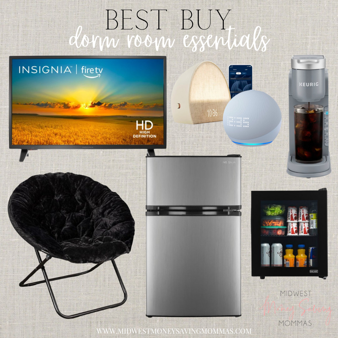 We also searched Best Buy for some appliances that they are going to need in their dorm room. A mini fridge with a freezer will help them store food and groceries. If they aren’t coffee drinkers yet, they probably will be soon with all the studying they will be doing… Picking up a single-serve Keurig is a good option for a dorm. Set the Keurig on top of the fridge to save space.