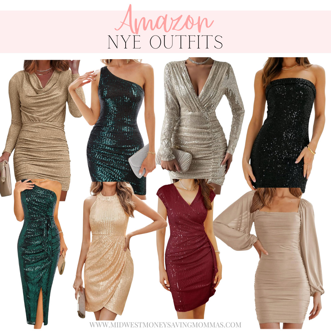 Amazon also has some beautiful dresses perfect for your NYE celebration. You can find your favorite style and get it prime shipped, which is great if you’re on a time crunch. The ruched look is very flattering, and this gold dress is a real winner. You can find several different lengths as well. If you like the midi look, this one is gorgeous!