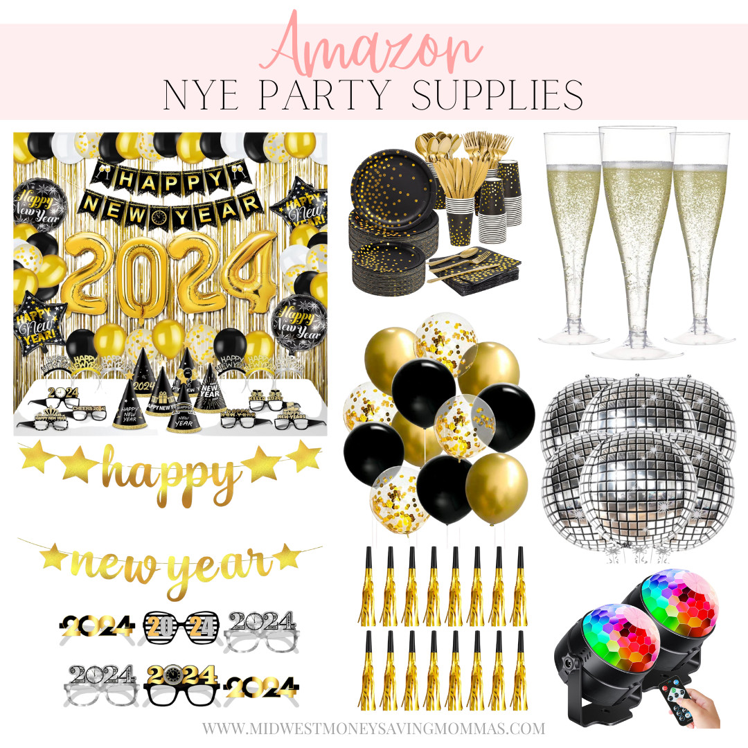 If you are hosting the party this year, you are going to need some supplies! You can find everything you need to throw a memorable NYE party on Amazon. Make sure you pick up some fun 2024 decor for photo backdrops to capture everyone’s sparkly looks! We also love grabbing affordable plasticware and champagne flutes on Amazon, rather than using items that could break.