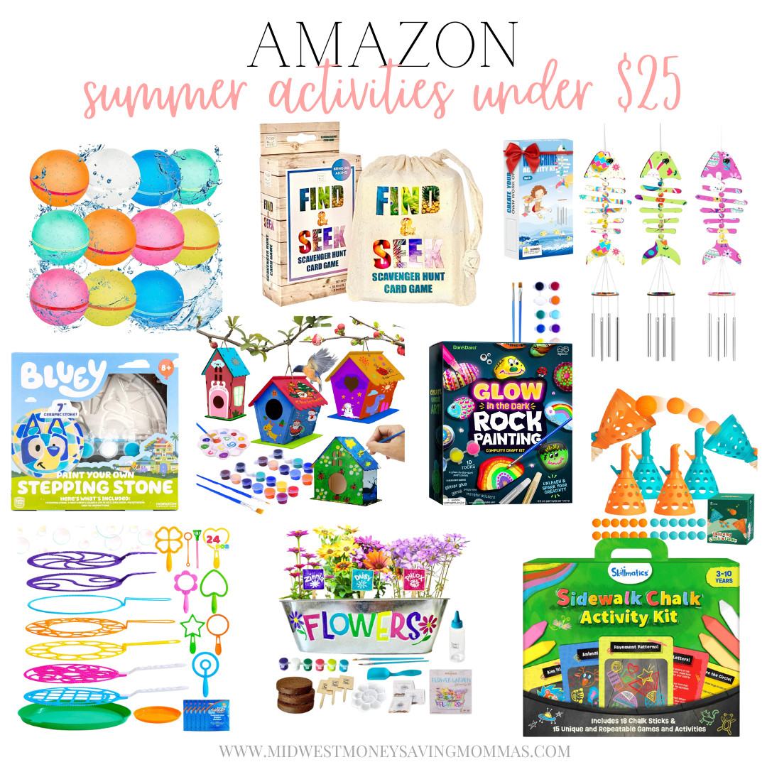 If you are looking for several activities to keep the kiddos entertained, we’ve rounded up several finds from Amazon that are all under $25. All of these items are great for doing outside, so they can get some sun and take advantage of these warm summer months. Amazon has a lot of painting activities that you can display once they are finished like these sweet little birdhouses or stepping stones. These are fun for the kids but are so special to have around the house as they get older.